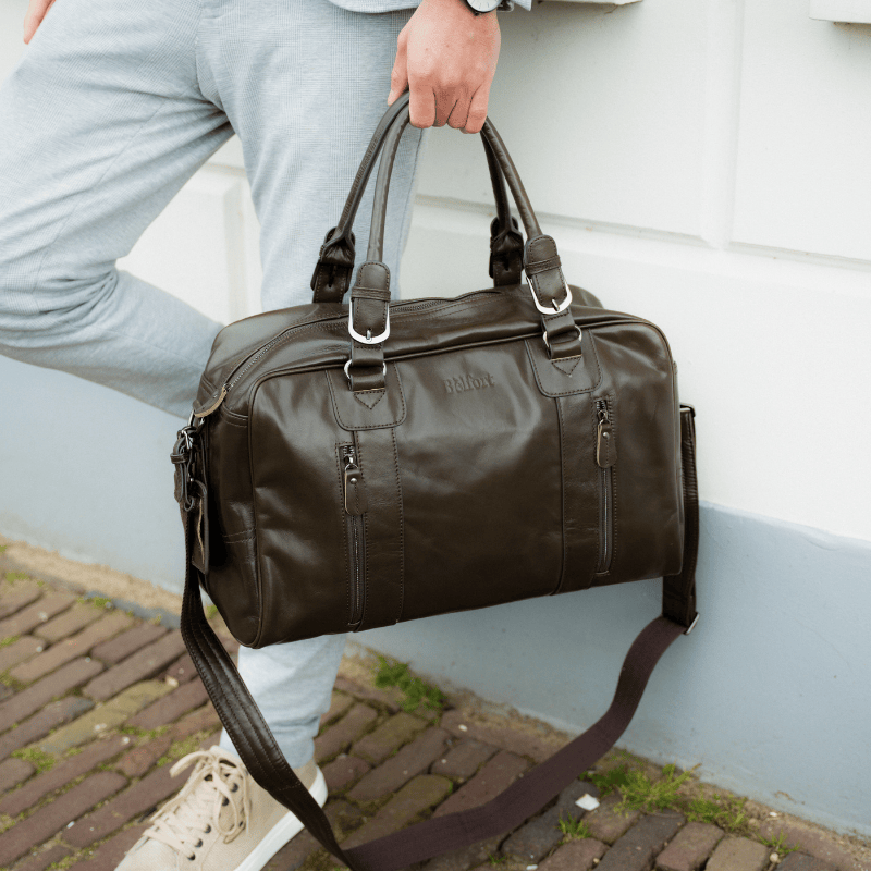 Ervaar ultieme elegantie met onze luxe leren weekendtas, perfect voor de moderne reiziger. Gemaakt van eersteklas leer en verfijnd met subtiele details, straalt deze tas pure klasse en vakmanschap uit. Stijlvol en functioneel, ideaal voor zowel zakenreizen als weekenduitstapjes.